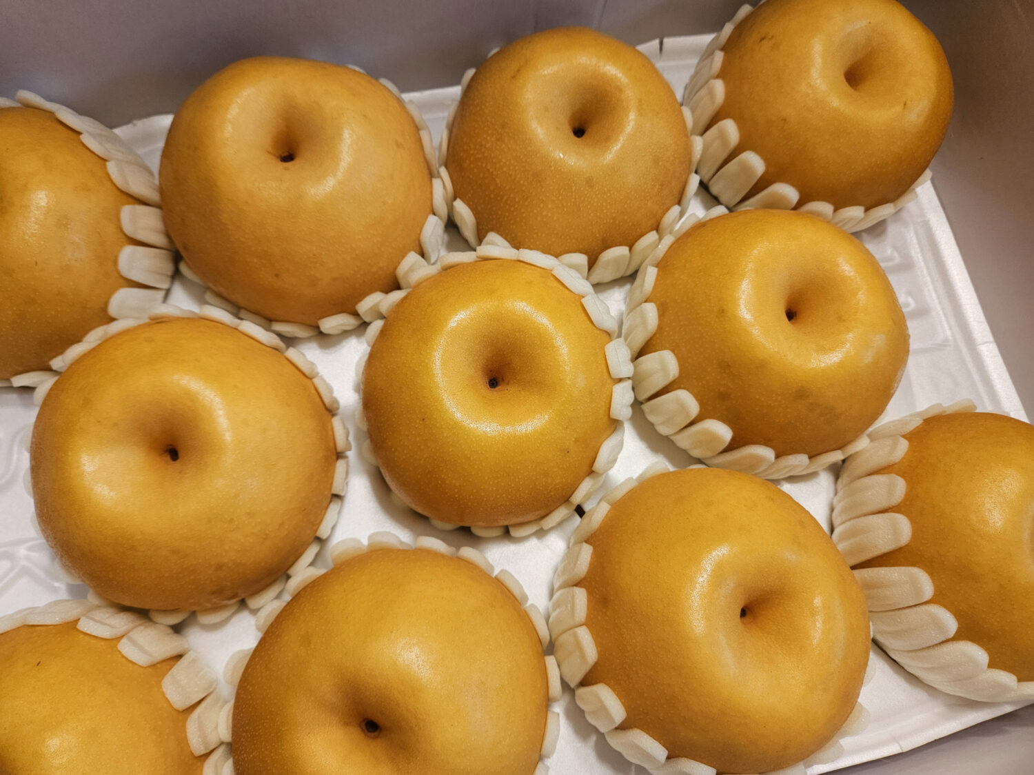 Korean pears are distinctly different from Western pears. Unlike the elongated shape of Western varieties, Korean pears are round like apples with a yellowish-brown skin. They produce a crisp, refreshing crunch when bitten into, with juicy flesh that offers a sweet flavor balance with an average sugar content of 12 to 14 Brix. This crispness and juiciness often earn them the nickname “fruit that quenches thirst in one bite.”